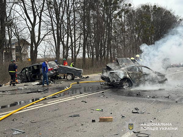 Як попередньо встановили поліцейські, сталося зіткнення двох автомобілів, після чого один з них загорівся й вибухнув.