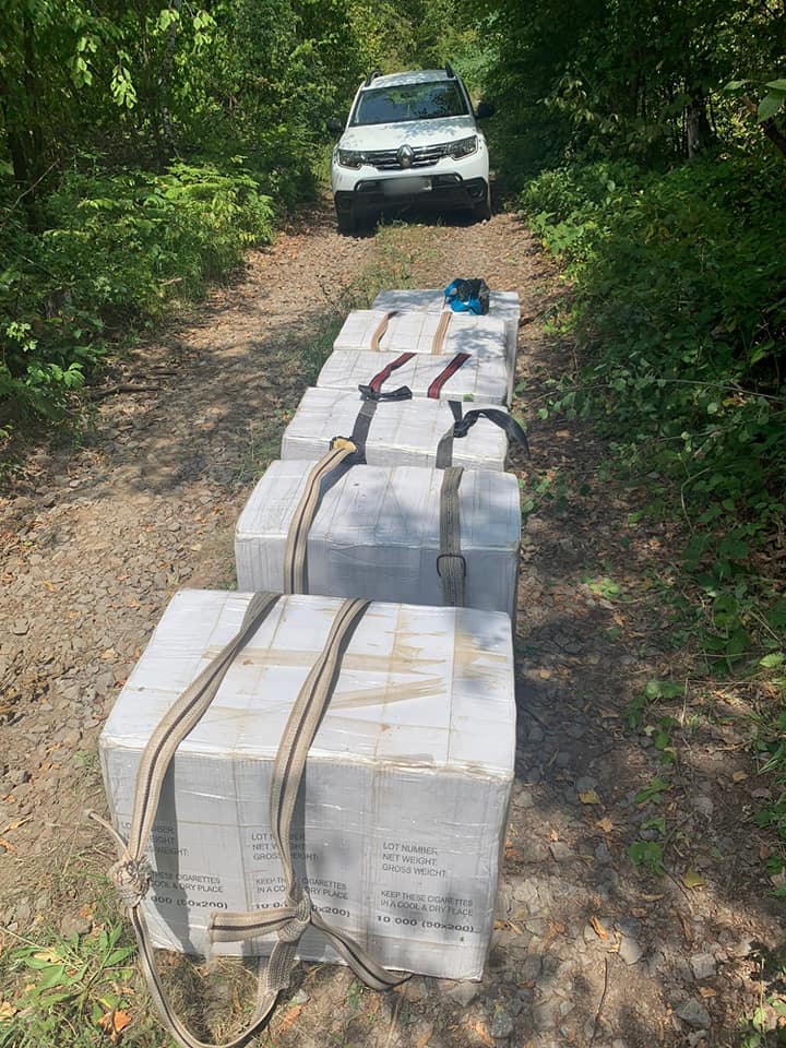 У район виявлення невідомого одразу вислали додаткові прикордонні наряди для проведення подальших пошукових дій. Згодом неподалік місця затримання правопорушника група реагування зупинила трьох чоловіків без документів з шістьма великими пакунками. В них знаходилося 9000 пачок тютюнових виробів без марки акцизного збору України.