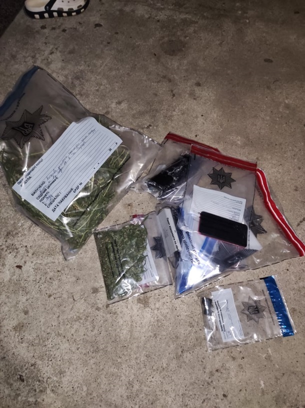 Крім того, під час обшуків правоохоронці виявили близько 300 г речовини рослинного походження, ймовірно, марихуани, і засоби для вживання наркотиків.