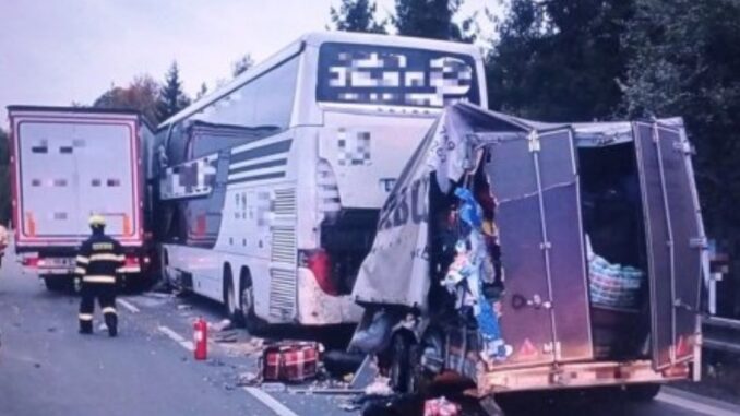 Сьогодні, 11 жовтня, близько сьомої години ранку на трасі D1 у напрямку столиці Чехії поблизу Смрчна в Їглавському краї сталася дорожньо-транспортна пригода за участі рейсового автобуса “Рахів – Прага”, у салоні якого перебувало 40 пасажирів, зокрема із Закарпаття, та вантажівки.
