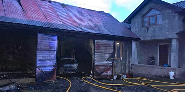 В Тячеві пожежа у гаражі знищила автомобіль та мотоцикл
